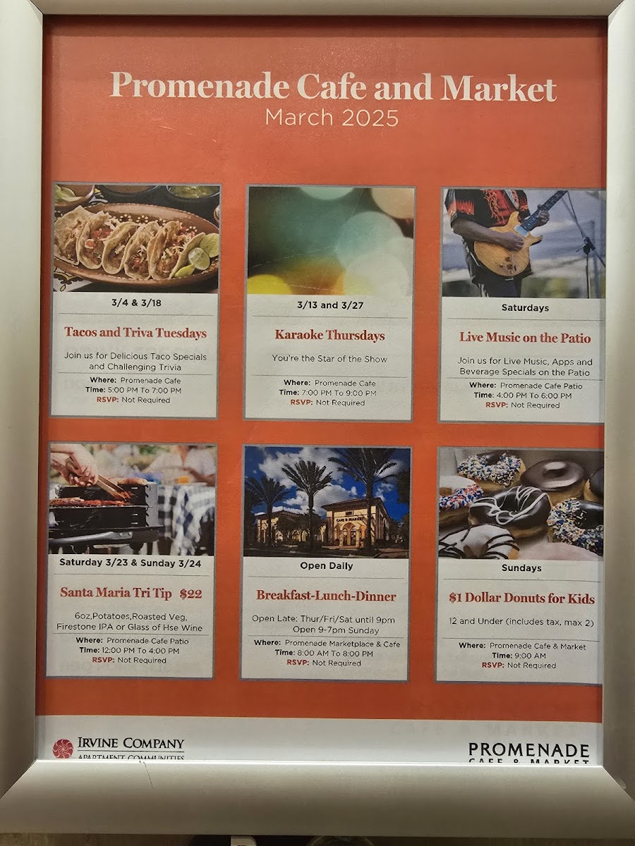 Welcome to Promenade Cafe and Market, a delightful culinary gem nestled in Irvine, California. This charming cafe effortlessly marries convenience with quality, offering a delightful mix of snacks, drinks, and casual meals.
